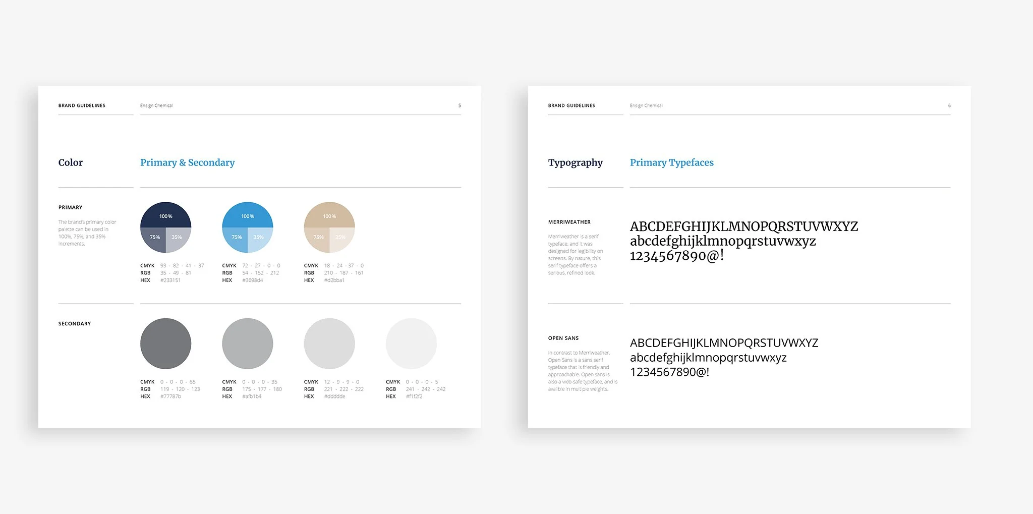 Ensign Chemical is a New Jersey-based distributer of chemicals and lab equipment. In addition to supplying products to customers in a variety of industries, Ensign offers warehousing and logistical support, packaging, testing, regulatory assistance, and much more. Ensign needed an identity that broke away from the overly sterile aesthetic of many of its competitors, but that still reflected the purity and personalization of their core offerings.